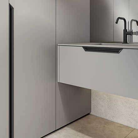 The new modular bridge handles, crafted from zamak and aluminum, boast a modern and elegant design. Versatile and functional, these handles offer a design that enriches the furniture while maintaining its core concept.