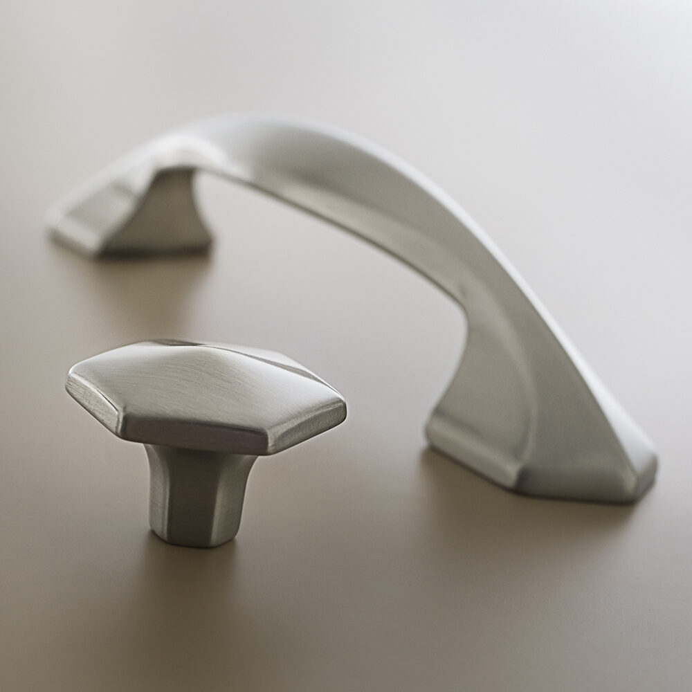 NOVECENTO knob, featuring bold and defined lines. Available in all finishes. Design by Marella Design Lab.