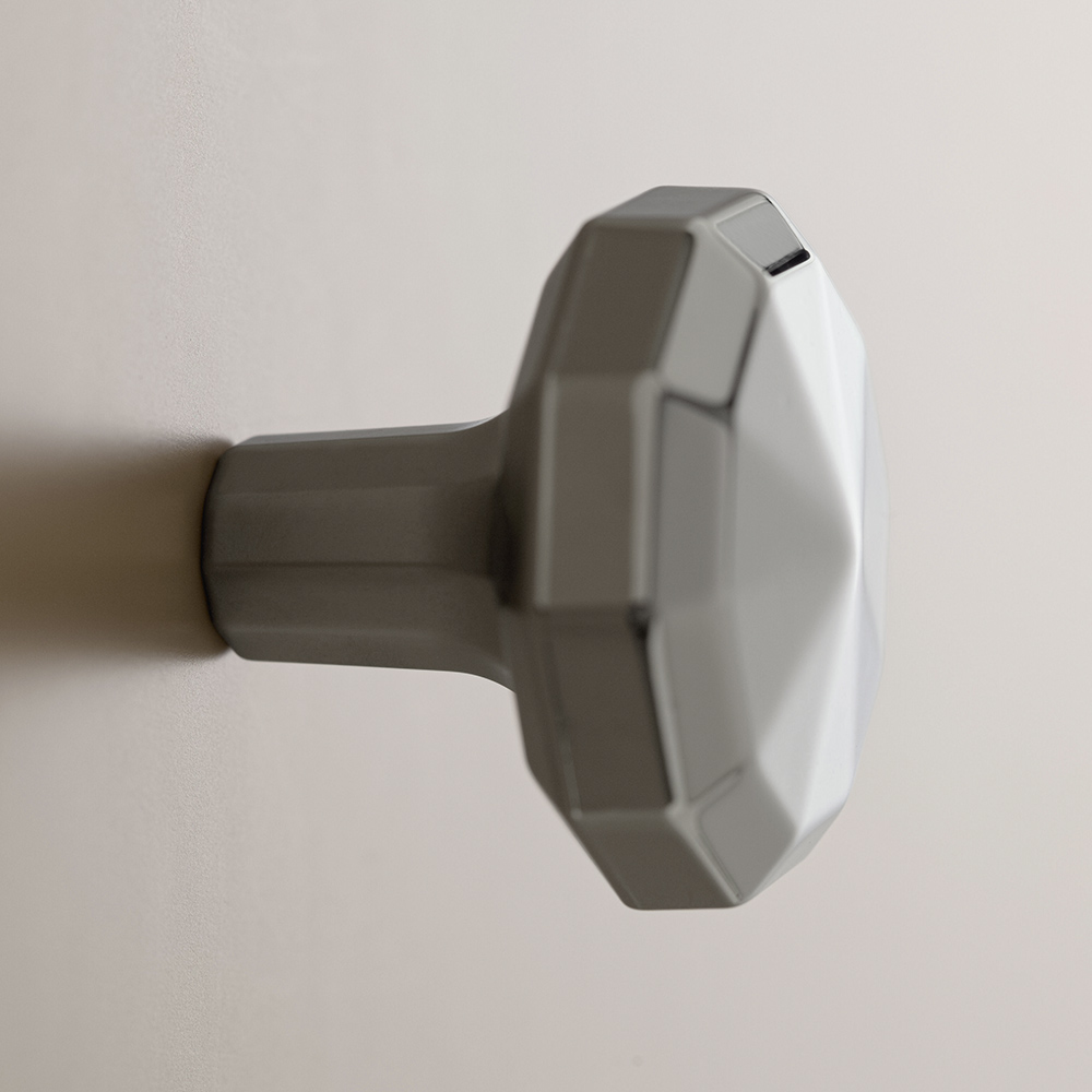 TUDOR knob, characterized by faceted and defined shapes. Available in all finishes. Design by Balutto Studio Associati.