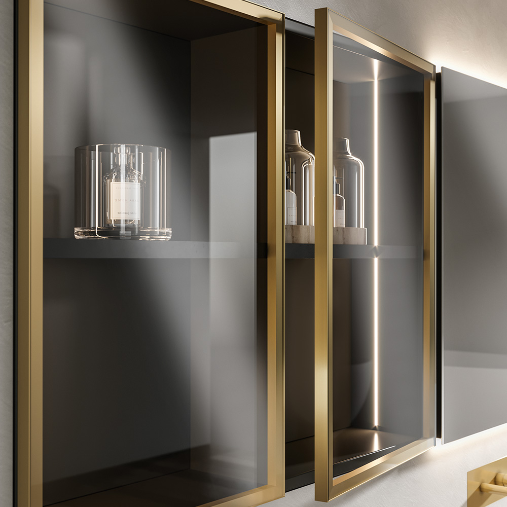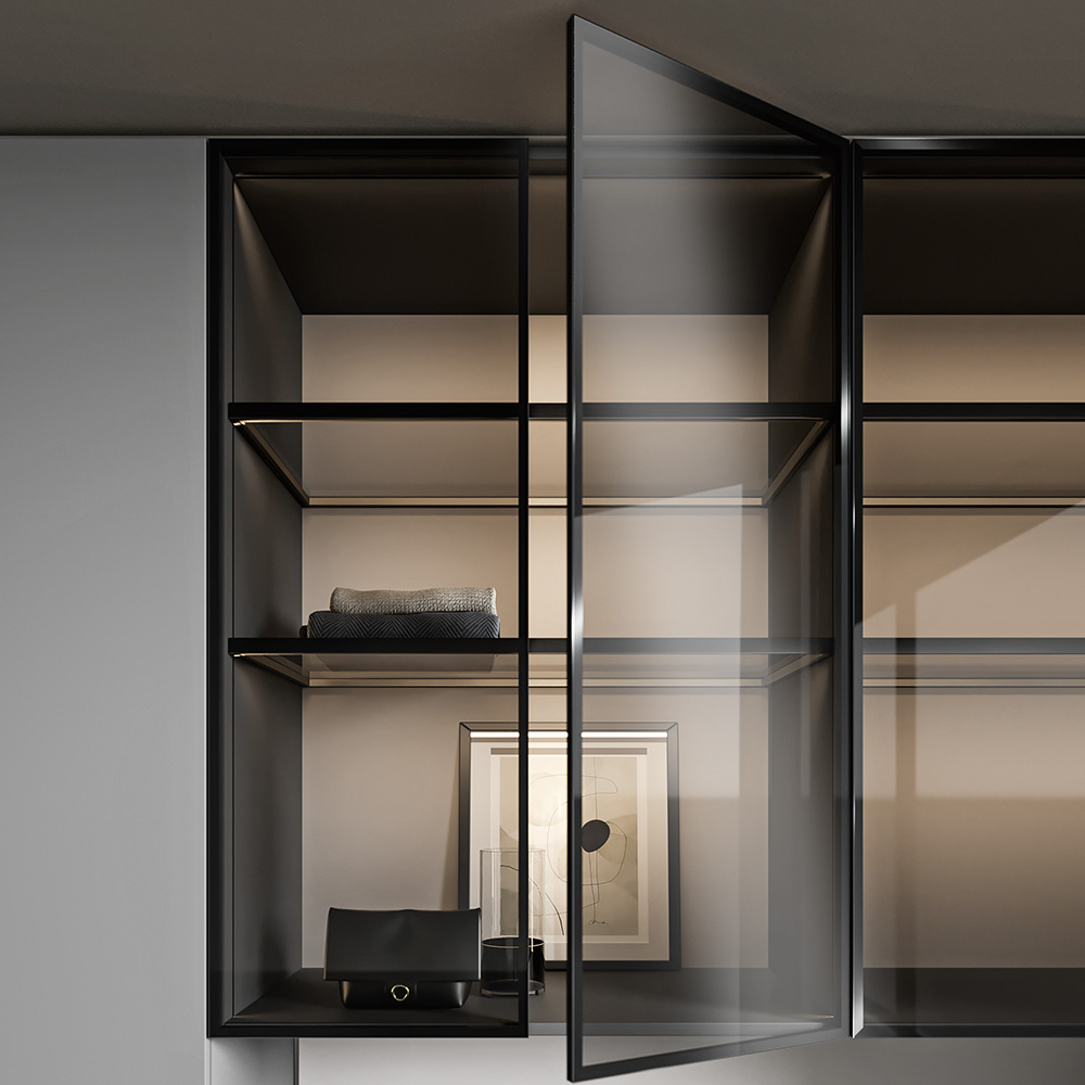 Seattle is an aluminum profile designed to be used on glass doors. Its design is modern and minimalist, with elegant and striped details. The profile can be custom-made with a 45° cut. Assembly is easy thanks to the fixing kit for oval head hinges and Up&Down hinges. The product is available in all new metallic finishes, making it trendy and very attractive.