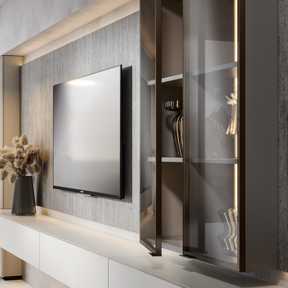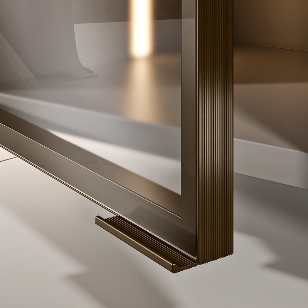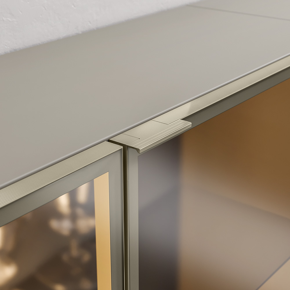 Chicago is an aluminum profile designed to be used on glass doors. Its design is modern and minimalist, with elegant and striped details. The profile can be custom-made with a 45° cut. Assembly is easy thanks to the fixing kit for oval head hinges and Up&Down hinges. The product is available in all new metallic finishes, making it trendy and very attractive.