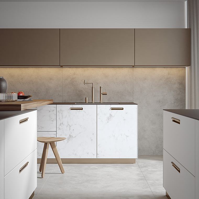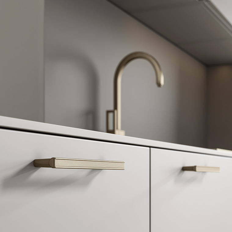 Champagne, finitura Questa tonalità dorata presenta una lucentezza sottile che cattura la luce in modo delicato, creando un'atmosfera di calore e luminosità. Il suo tono dorato, leggero e delicato, conferisce agli ambienti un'eleganza senza tempo, senza risultare eccessivamente vistoso o appariscente.