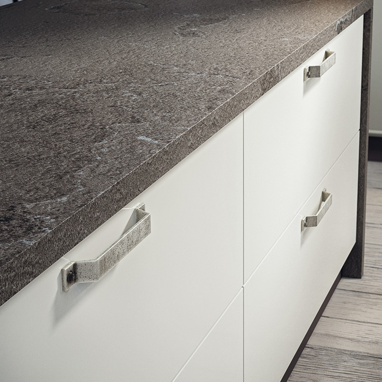 Pewter è una finitura dall'effetto grezzo e dai toni grigi. Rievoca i vecchi accessori dei casolari di campagna. L'abbinamento della finitura Pewter, con legno, vetro e acciaio crea un'atmosfera di ispirazione industriale, arricchita da un tocco di raffinatezza e stile.