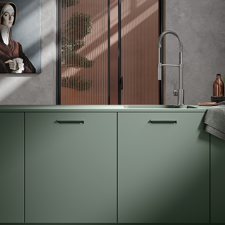 Verde malachite silk effect, dall’effetto setoso e molto piacevole al tatto con caratteristiche tecniche molto performanti. La finitura verde malachite extra matt con effetto silk incarna un'eleganza moderna e minimalista, arricchita da un tocco di lusso discreto. Caratterizzata dalla sua tonalità olivastra che richiama la bellezza naturale della malachite e dalla superficie extra matt con un effetto setoso, questa finitura dona agli oggetti un'aura di raffinatezza e stile, creando un'atmosfera di eleganza contemporanea.