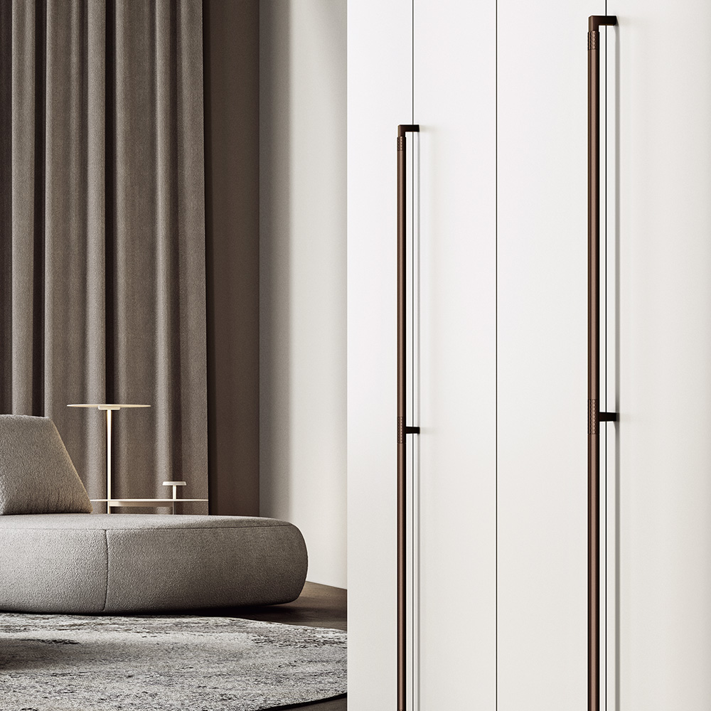 Cuore della casa e sinonimo di rifugio, relax e benessere, la zona notte richiede un’attenzione particolare nella scelta degli arredi, in ogni piccolo dettaglio. Le maniglie e i pomoli per i mobili della camera da letto di Roberto Marella S.p.A. giocano un ruolo essenziale in questo contesto, offrendo quel tocco speciale che può trasformare un semplice mobile in un elemento di design, unico e originale. La nostra collezione di maniglie per armadi, pomelli per comodini e settimanali ed elementi decorativi è progettata per integrarsi armoniosamente in ogni ambiente, rispecchiando lo stile e le esigenze di chi lo abita. Con la garanzia di una produzione 100% made in Italy, puoi affidarti a Roberto Marella S.p.A. per una camera da letto di design che non dimentica l’importanza della funzionalità.