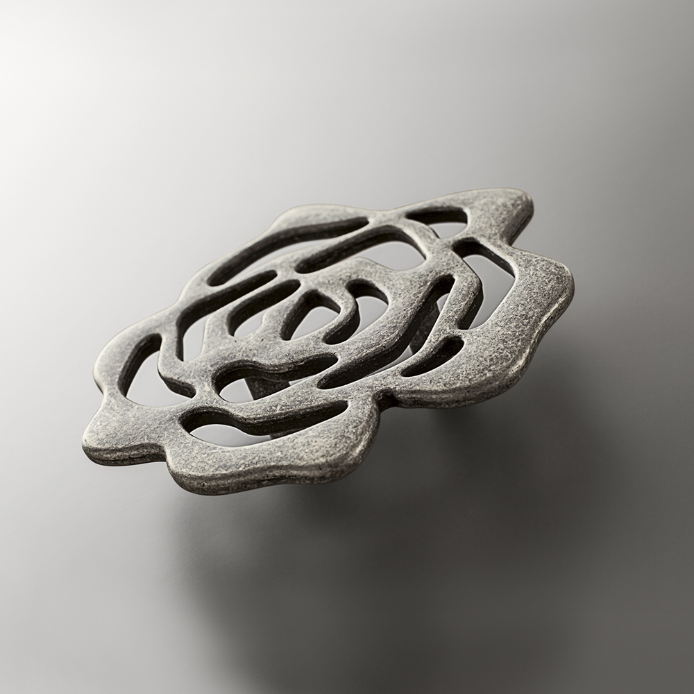Maniglia FLORIS, linee contemporanee che richiamano il design di una rosa stilizzata. Disponibile in tutte le finiture. Design: Marella Design Lab