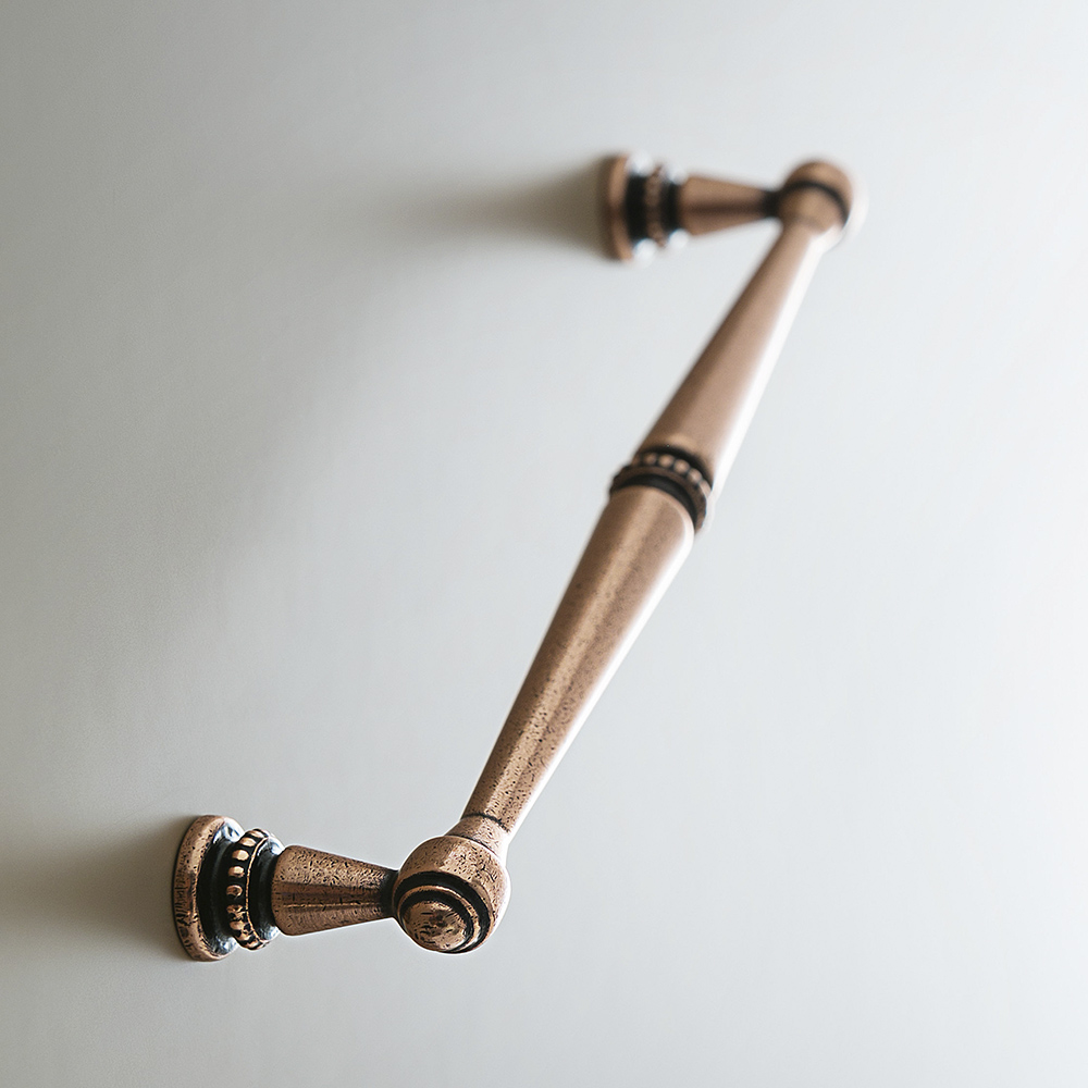 Maniglia QUEEN, modello coloniale dalle linee mordide. Disponibile in tutte le finiture. Design: Marella Design Lab