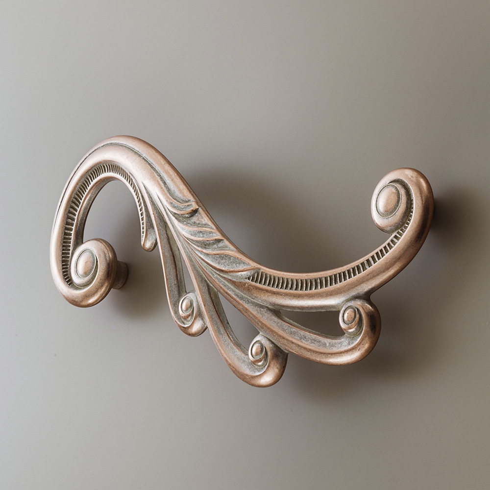 Maniglia JOLIE, forme barocche ma rivisitate in chiave contemporanea. Maniglia disponibile nella versione destra e sinistra. Disponibile in tutte le finiture. Design: Marella Design Lab