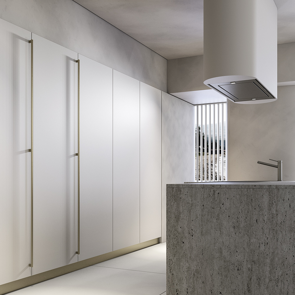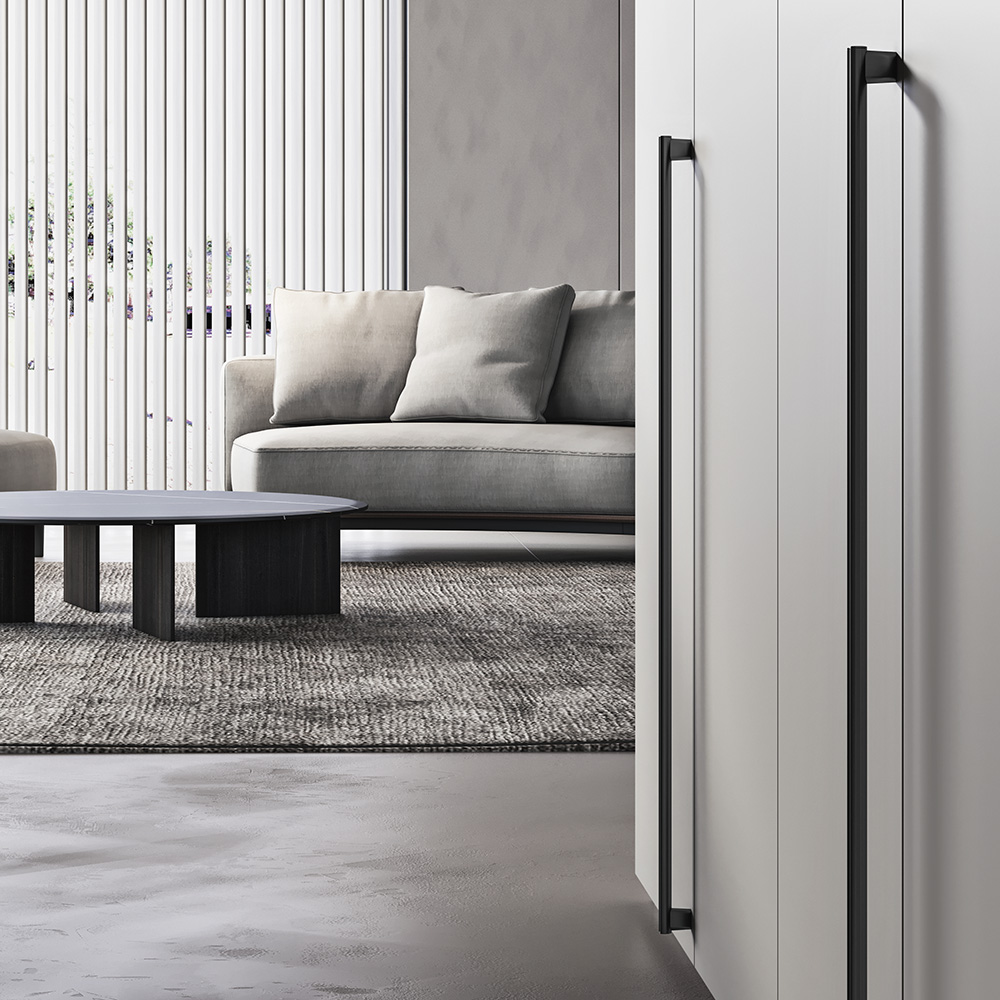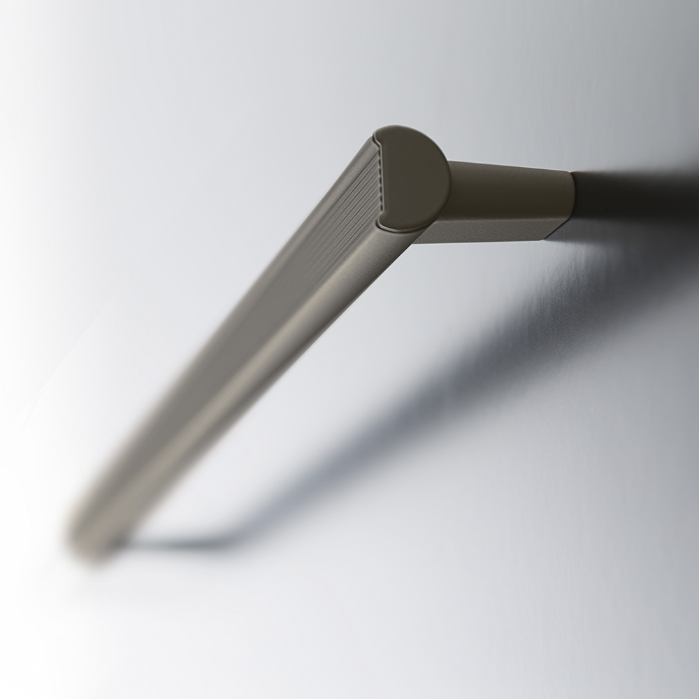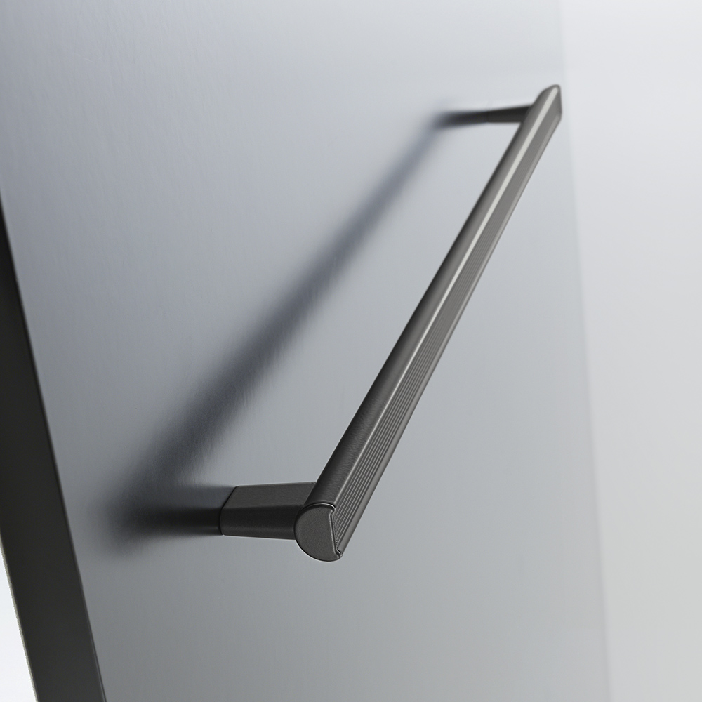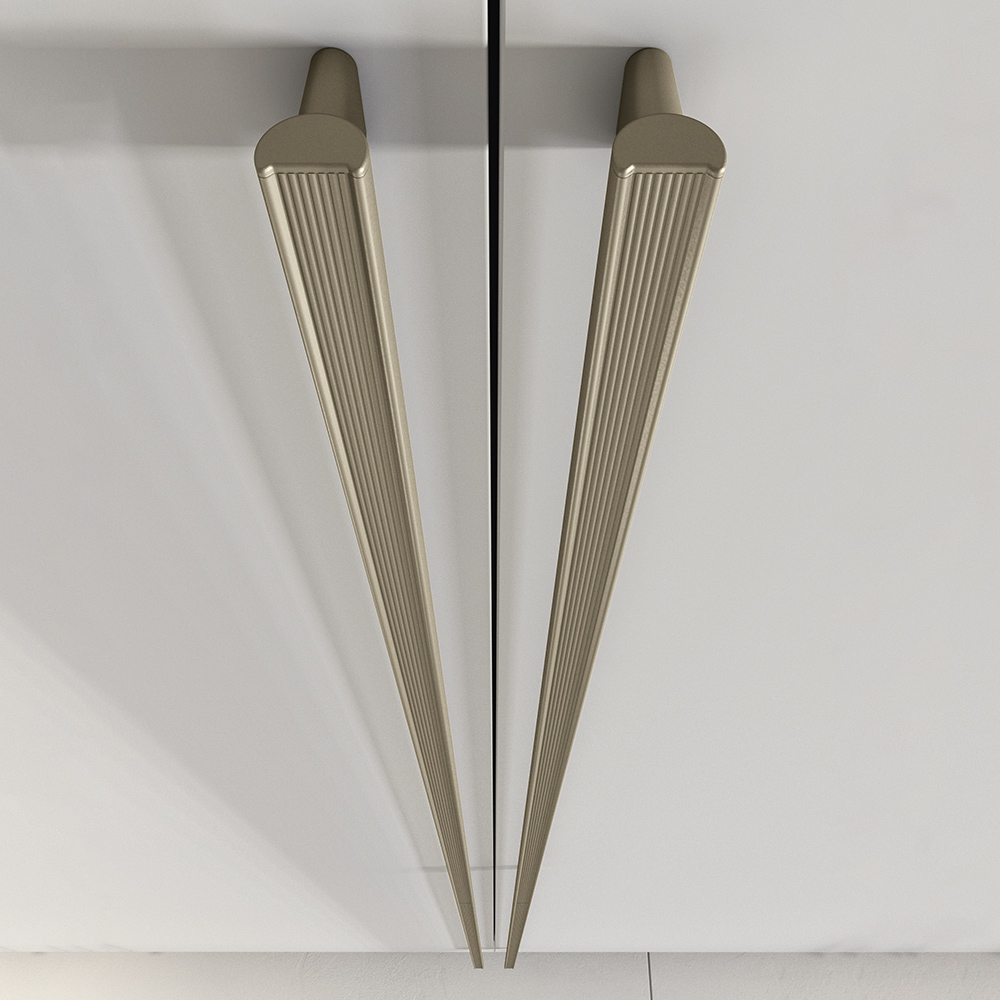 Maniglia a ponte modulare, RIVA. Linee morbide e moderne, il particolare rigato la rende una maniglia molto raffinata. Disponibile in tutte le finiture e adatta a tutti gli ambienti casa. Design: Marco Bortolin